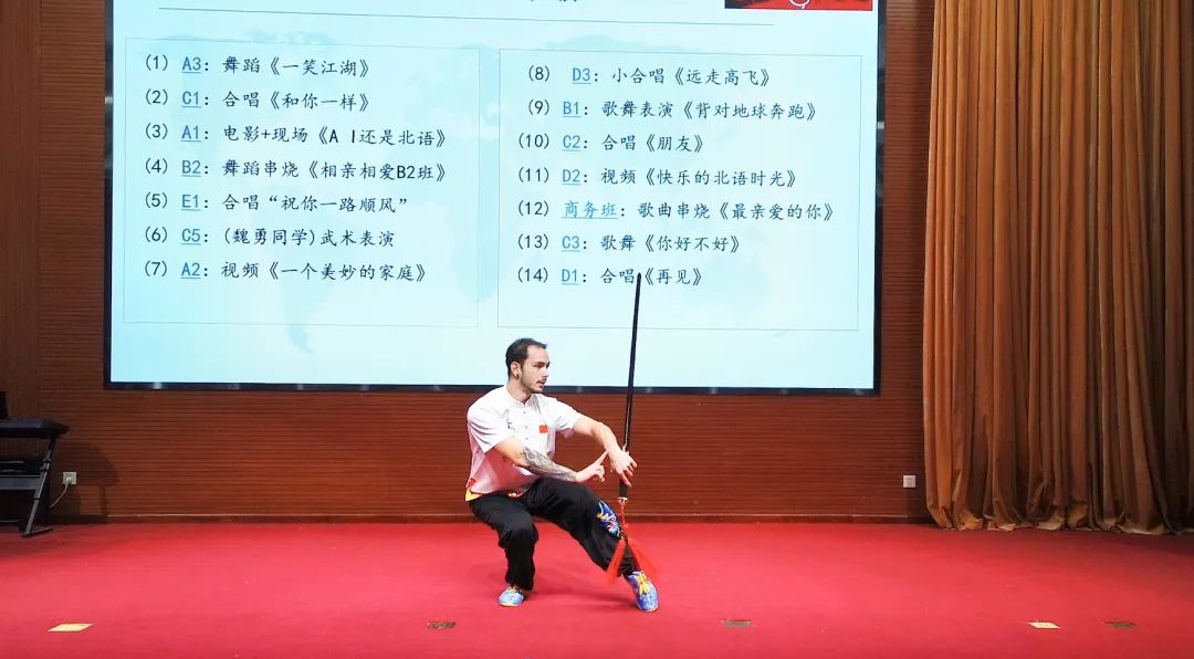在结业典礼上,留学生们还表演了丰富多彩的中文节目,展示了他们在语言学习方面的成果。这些节目包括歌曲演唱、舞蹈表演、自制短视频、中国功夫等,精彩纷呈,赢得了观众们的阵阵掌声。