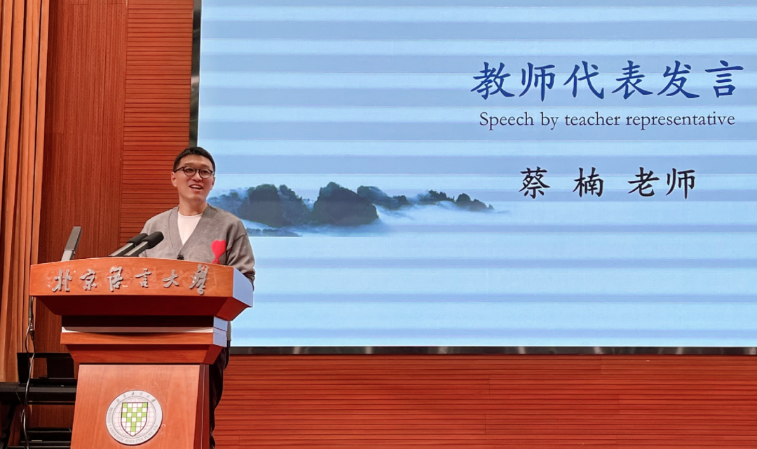 接下来教师代表蔡楠老师、学生代表德莉塔和尹河研也做了本学期的总结汇报,强调了学习、友情和生活等方面的重要收获。