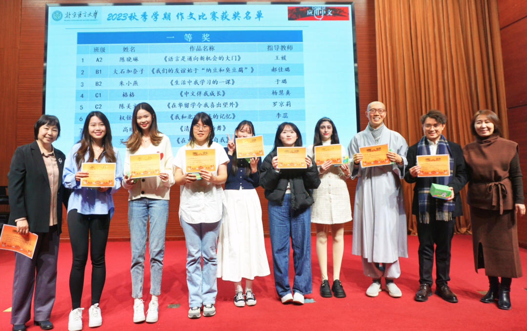 随后在热烈的掌声中,作文比赛获奖学生、全勤奖、勤学奖、班级贡献奖、优秀学生奖的名单一一揭晓,获奖的同学们上台领奖,并与老师们合影留念,他们的喜悦和自豪感染了在场的每一个人。