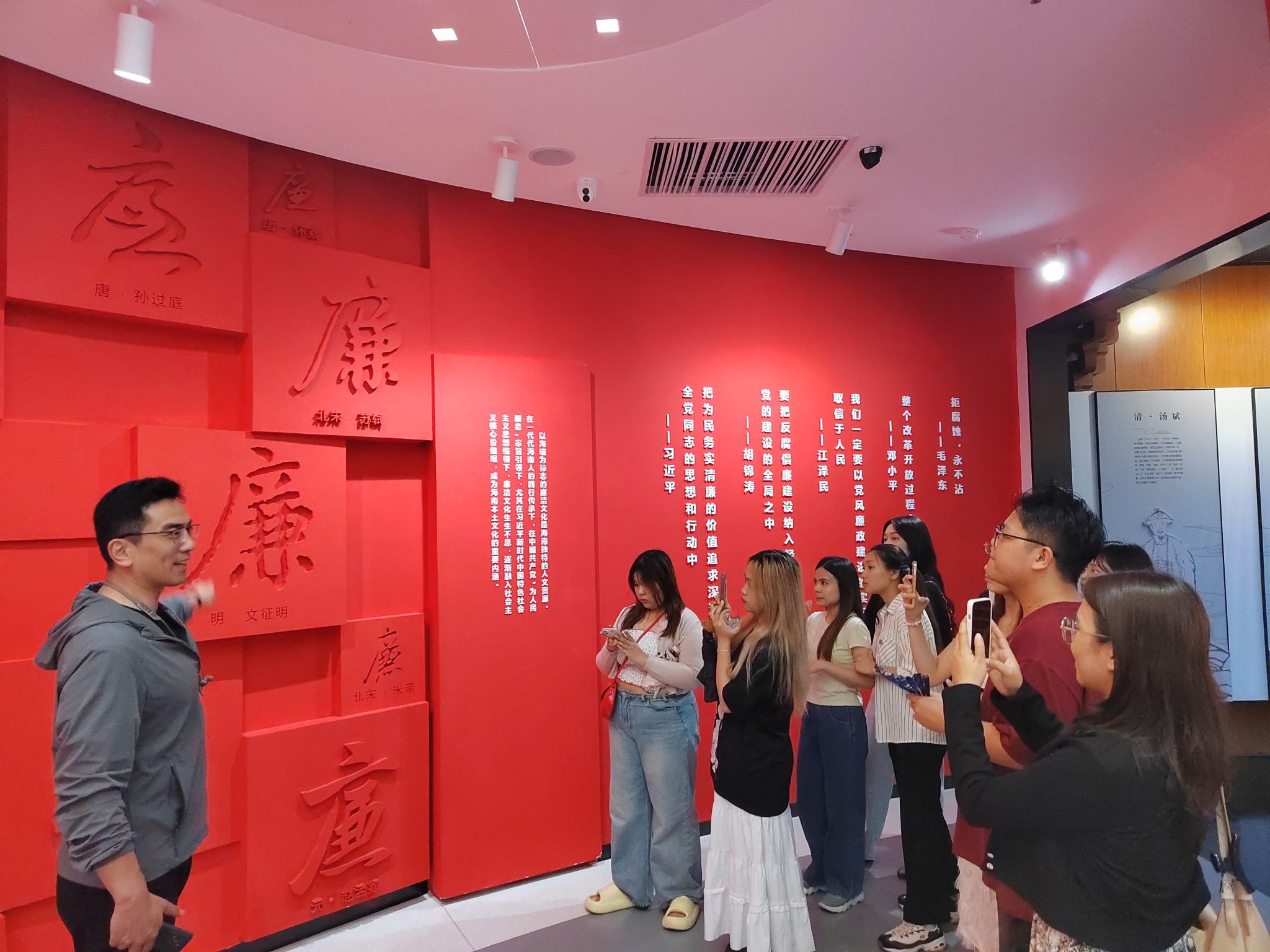 研学团还组织同学们来到省会海口,参观了海瑞纪念馆、海南博物馆、云洞图书馆和骑楼老街等地。在海瑞纪念馆,同学们详细了解了海瑞的生平事迹、政治理念和廉洁精神。老师们现场讲解中国“廉政文化”的历史传承和新时代内涵,以“海青天”为代表的正直清廉、刚直不阿、胸怀众生的廉洁精神,打动了各国留学生们。在骑楼老街,同学们三五成群地徜徉在一栋栋南洋风格的古建筑群中,仿佛在倾听着海口100多年来的前世今生,与中国的传统文化和现代文明进行着深入对话。