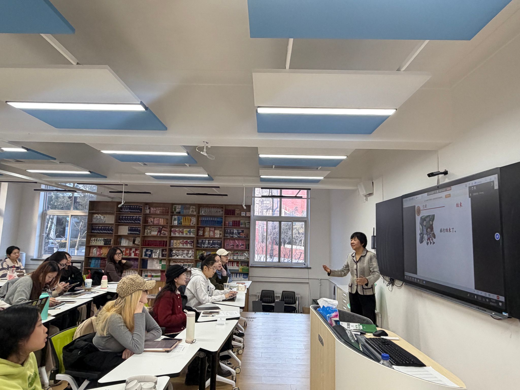启动了“国际中文教育硕士研究生教学实践能力提升实训”系列活动,1月7日下午,首场活动特邀国际中文教育领域资深教学专家陈军副教授作为行业导师,在教五楼智慧教室带来题为“课堂教学意识和行为的初步构建”的专题实训。实训围绕教学核心环节展开,内容详实、案例鲜活,为在场研究生搭建了理论与实践衔接的桥梁,共31位研究生同学参加了此次。此次活动同时也被纳入“a片漫画