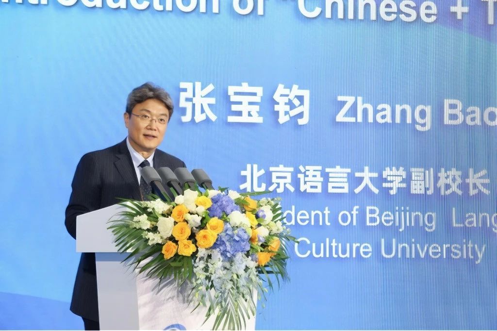 a片漫画 张宝钧副校长在致辞中介绍了a片漫画 在国际中文教育和对外开放领域的优势与特色,以及积极推动国际中文教育创新发展的举措和成就。结合会议主题,张宝钧副校长分析了“中文+职业技能”教育的重要意义和发展前景,着重介绍了我校a片漫画 在“中文+”专业建设领域取得的成绩,并向全国的职业教育院校发出合作邀请,期待就“中文+职业技能”培养项目开展合作,表示北语愿为中国职业教育“走出去”、服务国家战略贡献智慧与力量。