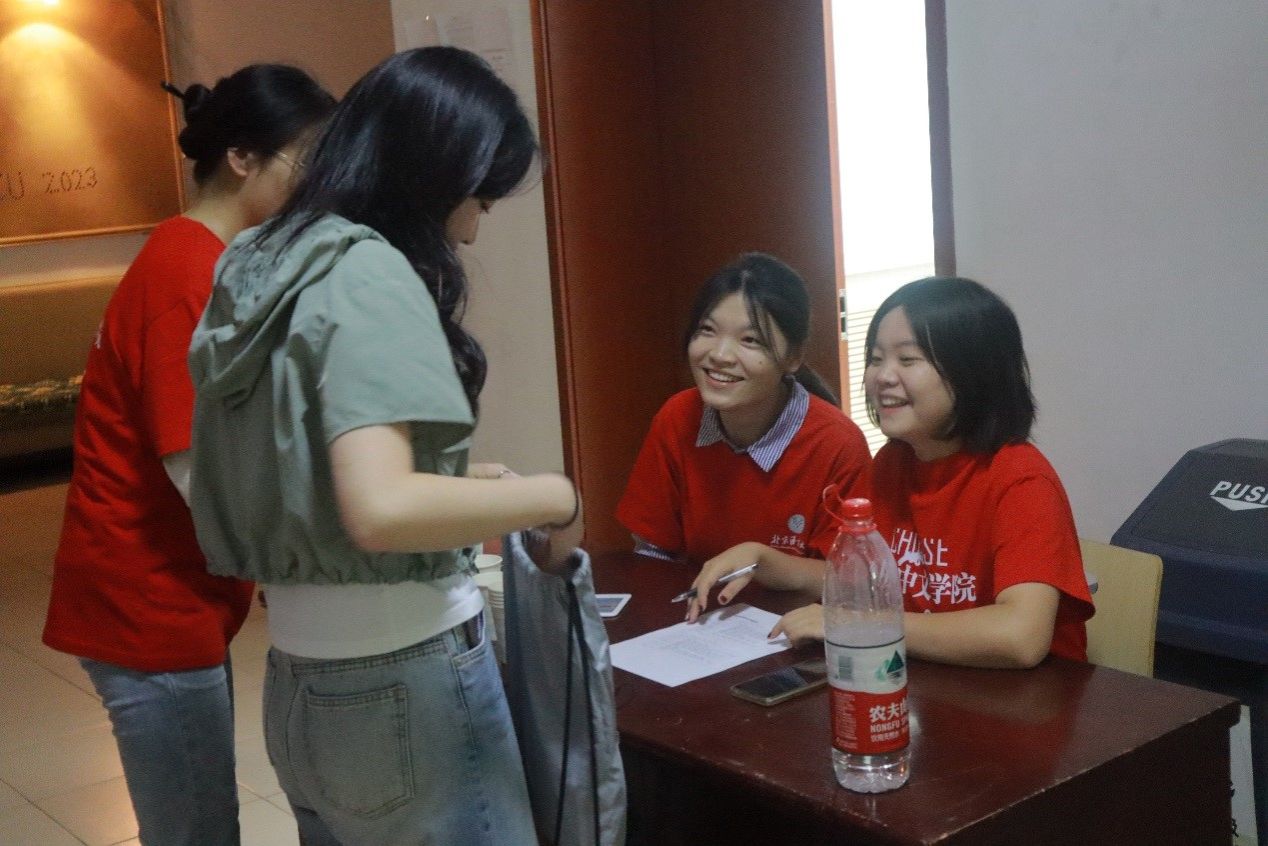 活动前期,学院党委和项目团队进行了精心的安排,其中也包括对志愿者的培训工作。在专门的志愿者岗前培训会上,项目负责人陈军老师细致地向我们16位志愿者介绍了活动中的基本工作内容以及注意事项,学院党委副书记白浩老师根据文化体验项目给大家进行了分组。学院还为我们配发了志愿服务的T恤。我一边仔细聆听、牢记老师们的安排和提醒,一边感慨于老师们前期准备工作的细致周到。第一次亲身参与,才知道原来一个看起来活泼、轻松的留学生文化体验活动,背后有许许多多看不到的努力和付出。从签到流程到座位安排,从文化体验材料的准备到两个活动间如何转场衔接,老师们事无巨细都要考虑得那么细致。此时我更加确信,参加这次志愿者活动对我自身而言绝对是一个宝贵的学习机会,心中对接下来的活动也更加满怀期待。
