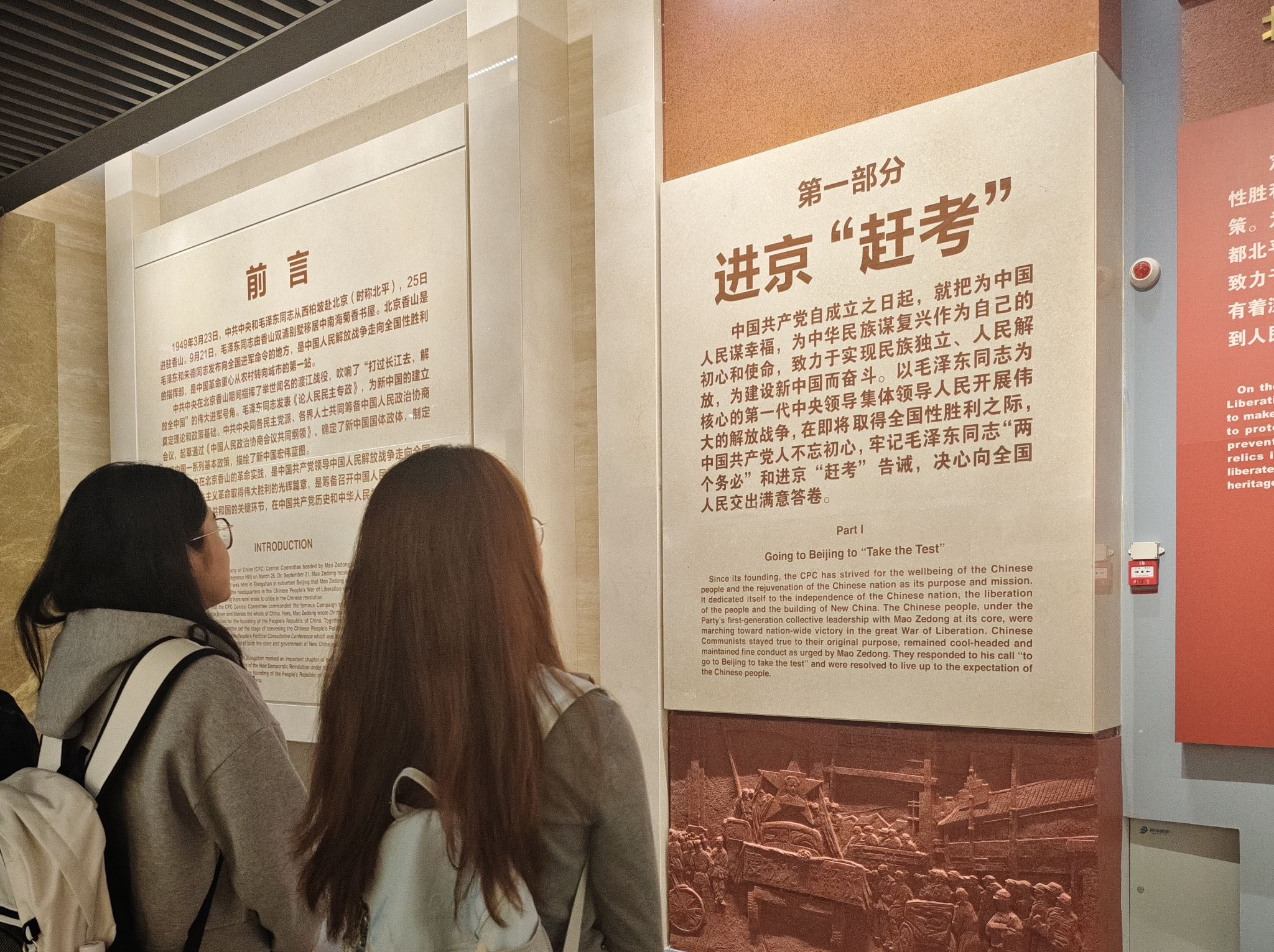 魏思远:今天我们班级集体参观了香山革命纪念馆并游览了香山公园。在香山革命纪念馆中,我们学习了党在香山的革命实践历程,这是党领导人民解放战争走向全国性胜利、新民主主义革命取得伟大胜利的光辉篇章。毛主席曾在进驻香山前发出号召:“我们进京‘赶考’去,我们绝不当李自成,我们都希望考出个好成绩。”这让我联想到自己也是因“进京赶考”来到北京,最终取得了“胜利”。这个过程是艰辛的,但结果是美好的,正如党必会领导中国人民取得最后的胜利,实现中华民族伟大复兴的中国梦!