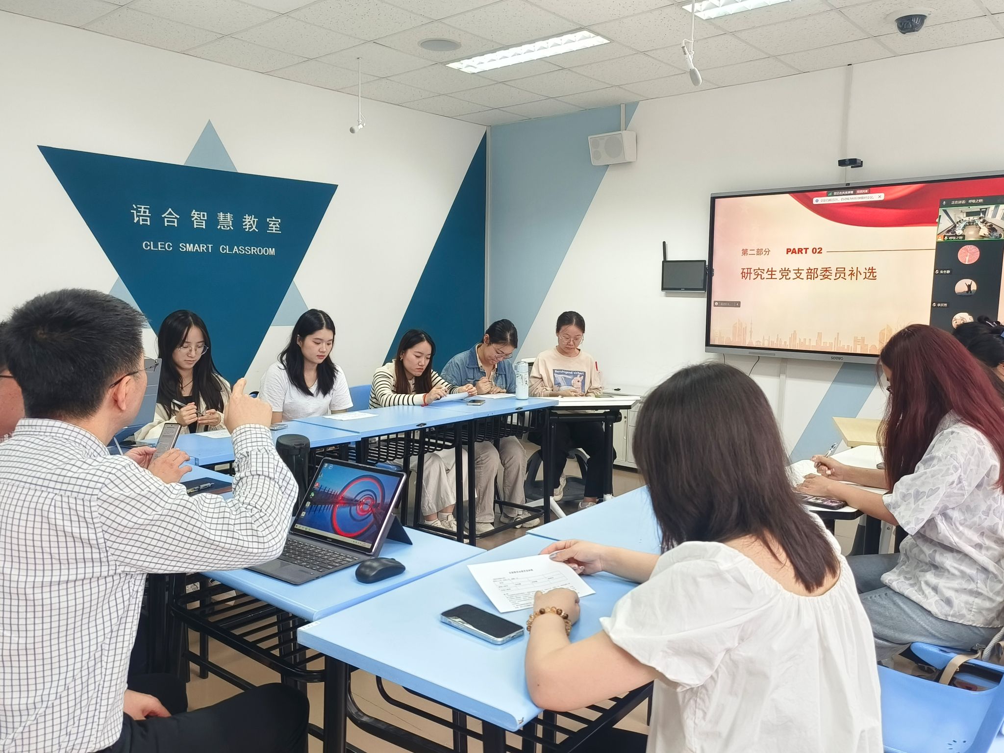 研究生党支部在教三楼212教室成功召开了全体党员大会,并举办了新生党员见面会。会议由支部书记张菊萍主持,全体党员和预备党员参与了此次会议,其中包括因海外工作等原因通过线上方式参会的4名党员。此外,学院党委书记周鑫与副书记白浩老师也出席了会议。
