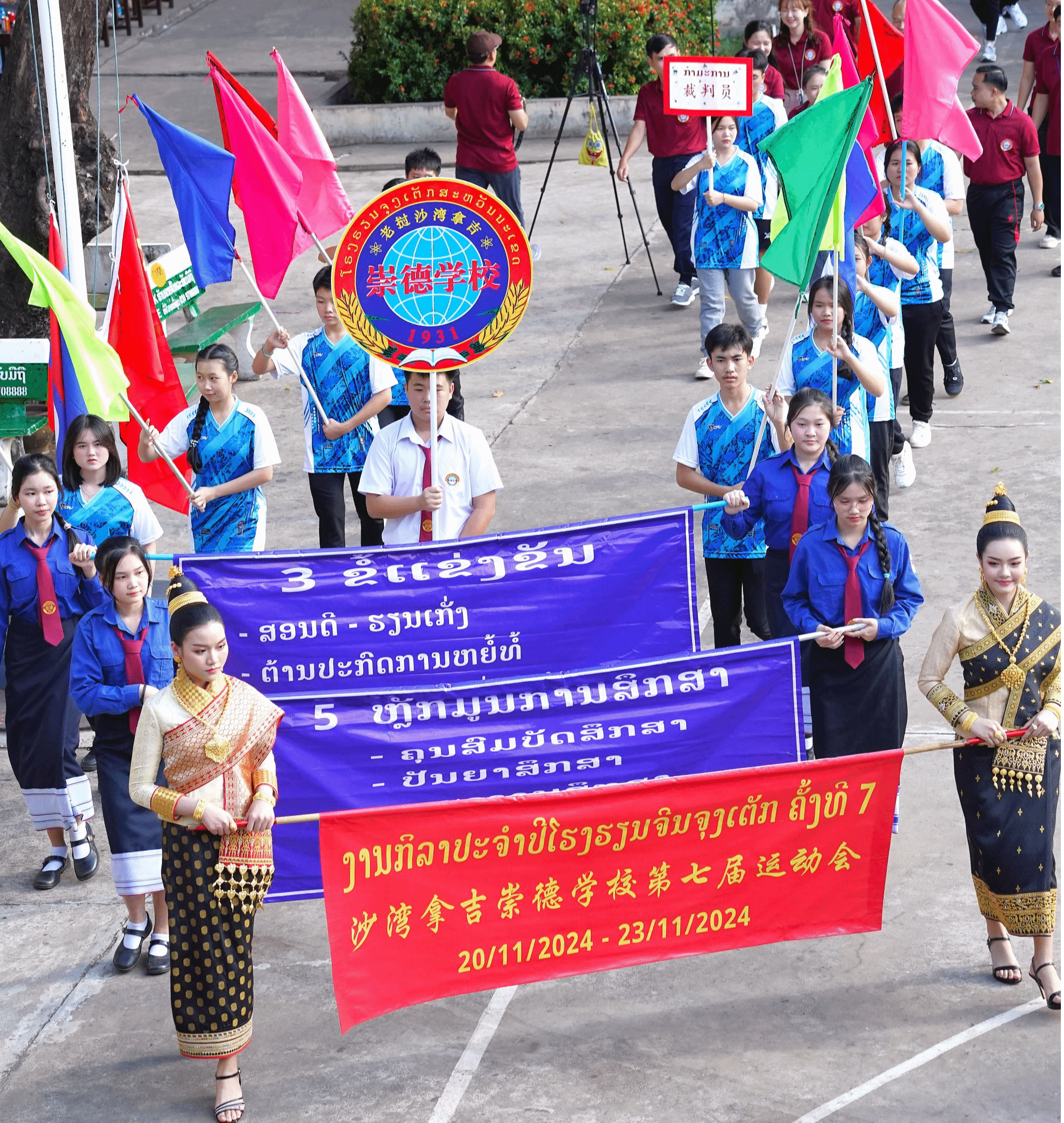 在学校最平凡而又普通的文体活动里,中老文化的碰撞与融合更显生动。校运会开幕式上,中老元素共融的方阵缓缓走过:学生们身着老挝传统服饰,举着中老双语旗帜,体育活动成为文化交流的展示平台,让两国文化在运动中相互交融、相互促进;气排球比赛时,我作为裁判讲解规则,看着学生们在赛场上挥洒汗水,竞技的紧张里,友谊悄然升温,学生们在体育活动中感受到中老文化的共同价值与内涵,增进了两国人民之间的相互理解和尊重。
