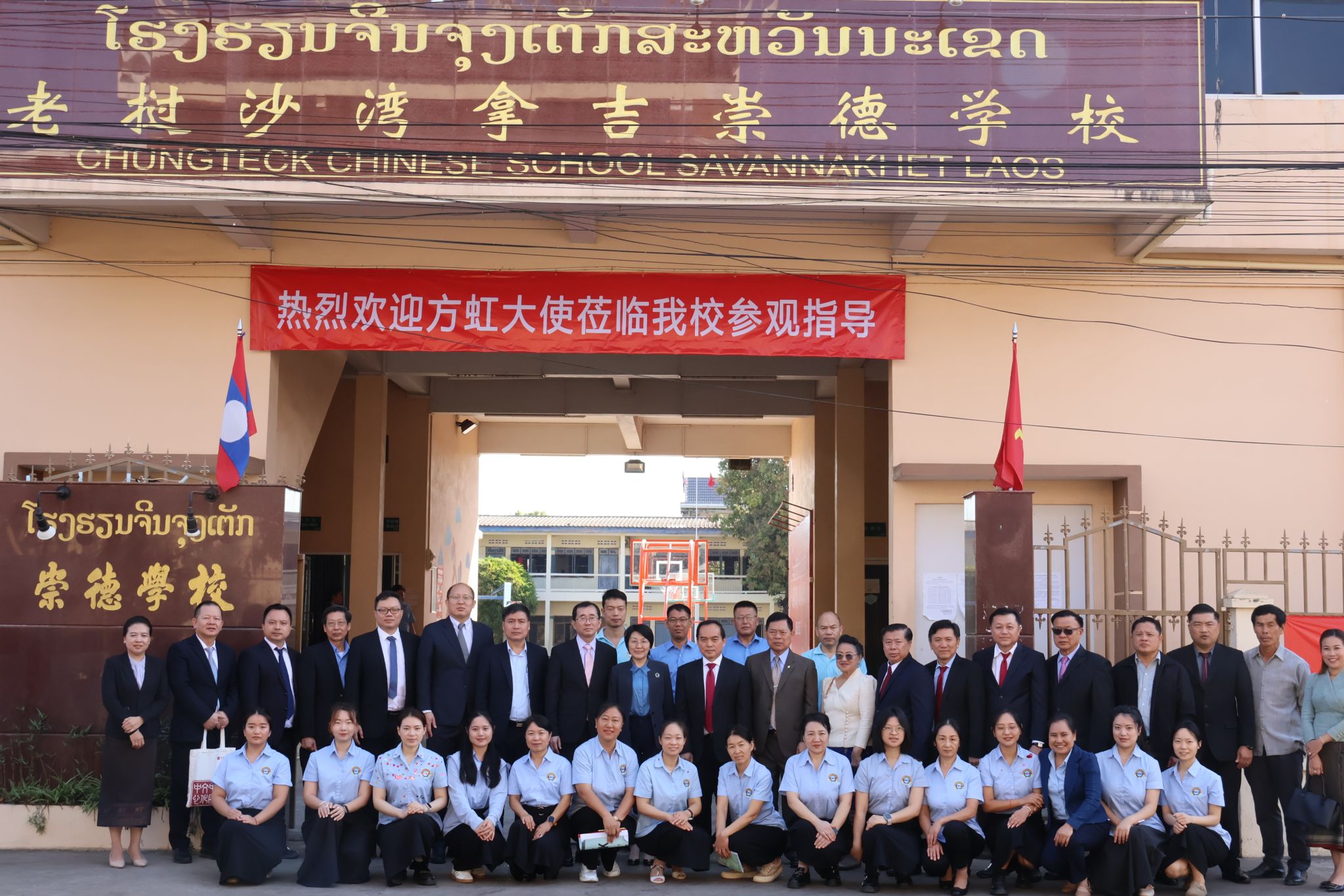 还有山西的老师们来学校培训时,中老教师共同学习山西舞蹈《一把酸枣》。团扇挥舞间,不同文化背景的我们,因舞蹈韵律心意相通,艺术活动让中老教师找到了共同的语言和情感共鸣,促进了两国文化的交流与融合。更难忘中国驻老挝大使方虹莅临学校参观指导的日子,校园里洋溢着自豪与喜悦,老师们与大使合影的瞬间,让我真切感受到中老友好的坚实纽带,也更明白自己作为文化使者的责任。