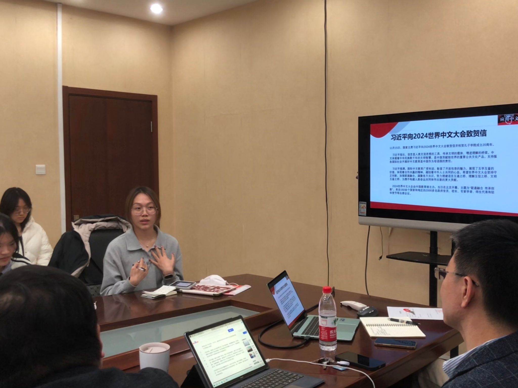 随后,同学们结合自身经历踊跃分享贺信感悟,纷纷表示总书记的贺信为做好汉语国际教育事业提供了高屋建瓴的重要指引。